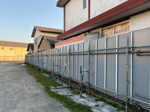本施工では、仮設工事の一環としてフラットパネルを使用した仮囲いの設置を行ないました。